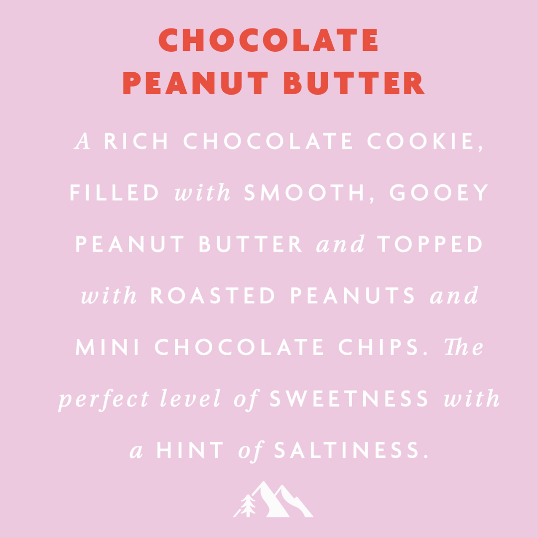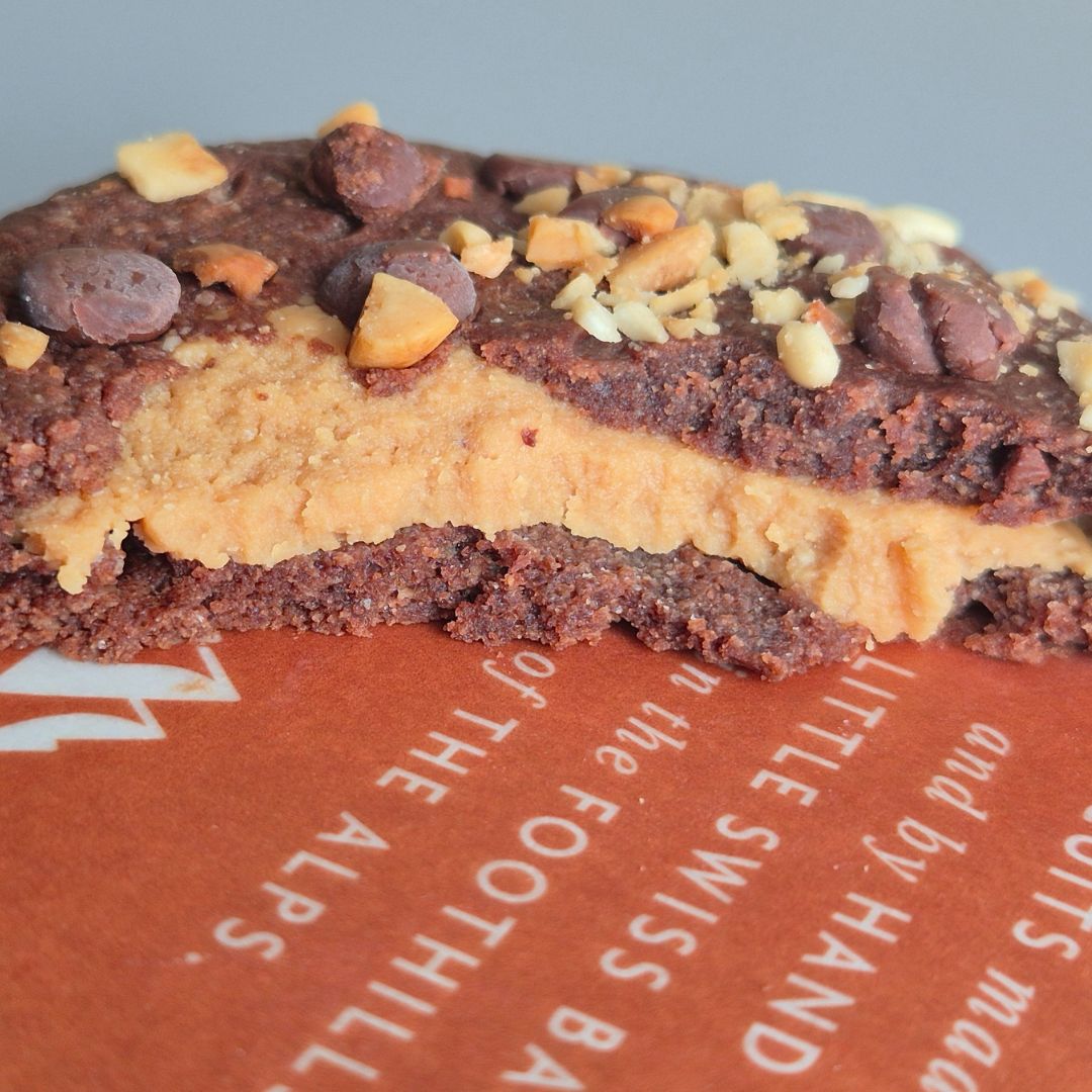 Esta cookie da Rhythm108 é uma bolacha de chocolate rica e macia, recheada com pasta de amendoim suave e gulosa, e finalizada com amendoins torrados e pepitas de chocolate. A combinação perfeita entre doçura e um toque subtil de salgado.
